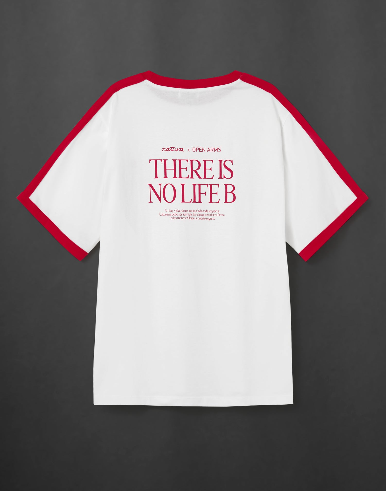 Designed in collaboration with NaturaThis t-shirt celebrates the defense of human rights and conveys a message that reminds us of what is essential: “There is no Life B”.