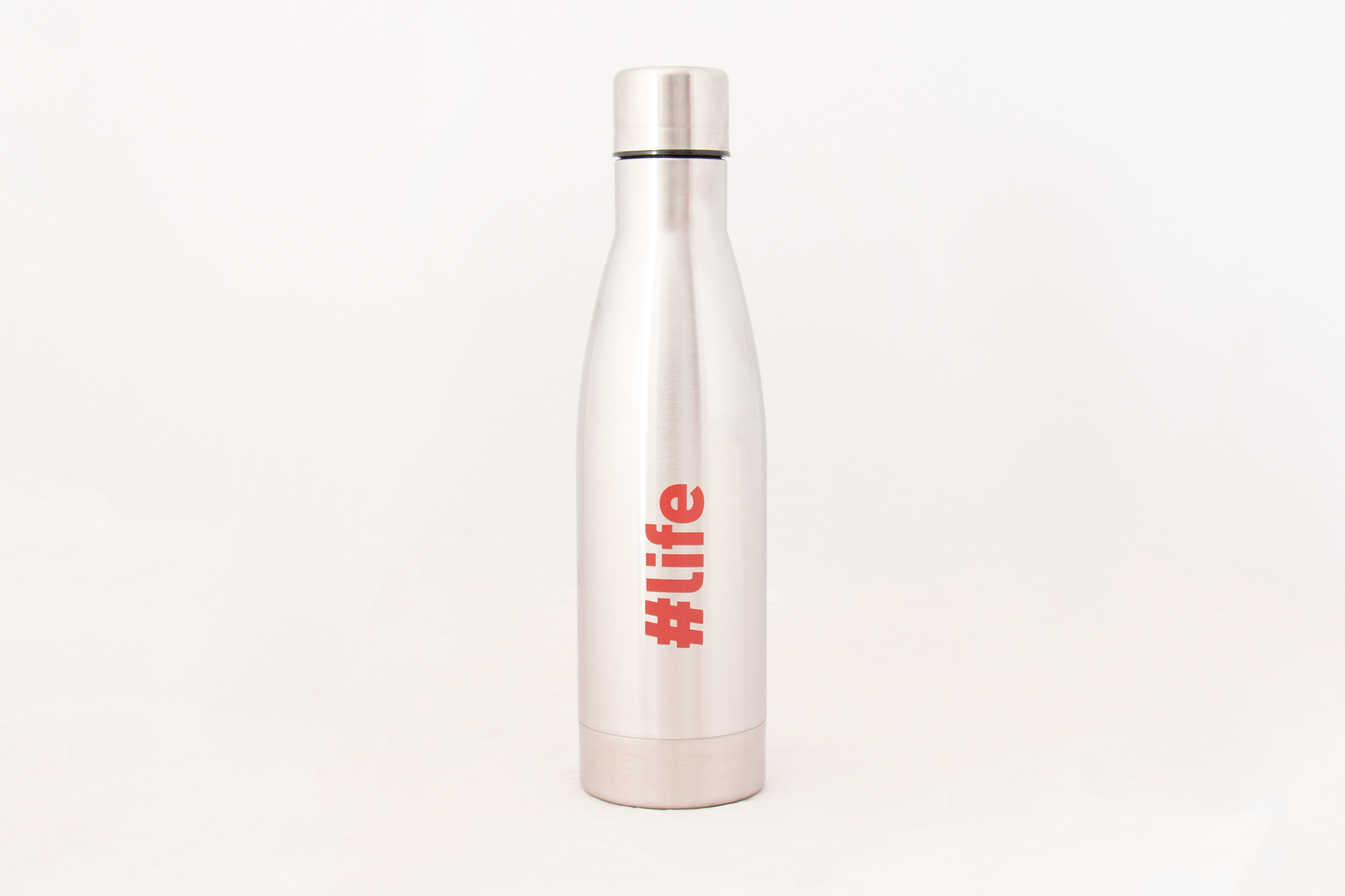 Questa bottiglia mantiene la temperatura del liquido al suo interno per 12 ore e tu contribuisci a mantenerlo in vita. la missione di Open Arms: proteggere vita e il diritti di centinaia di persone.