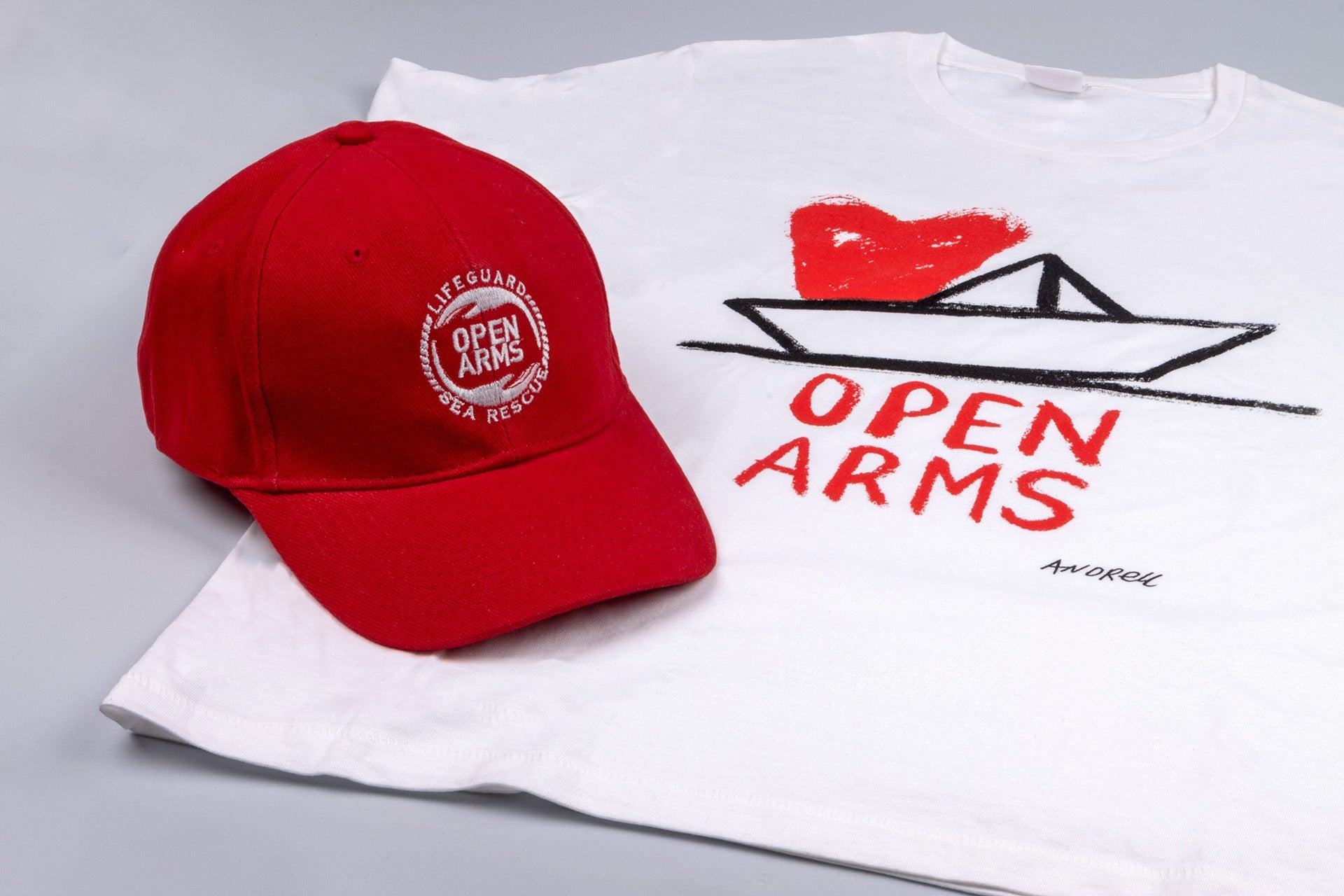 Pacchetto che unisce la t-shirt Andreu Buenafuente x Open Arms e il cappellino con il logo Open Arms. Andreu Buenafuente si unisce alla nostra missione con un'esclusiva t-shirt solidale pensata per aiutarci nel nostro lavoro contro l'ingiustizia e in difesa della vita in mare e sulla terraferma. Aiutaci a continuare.